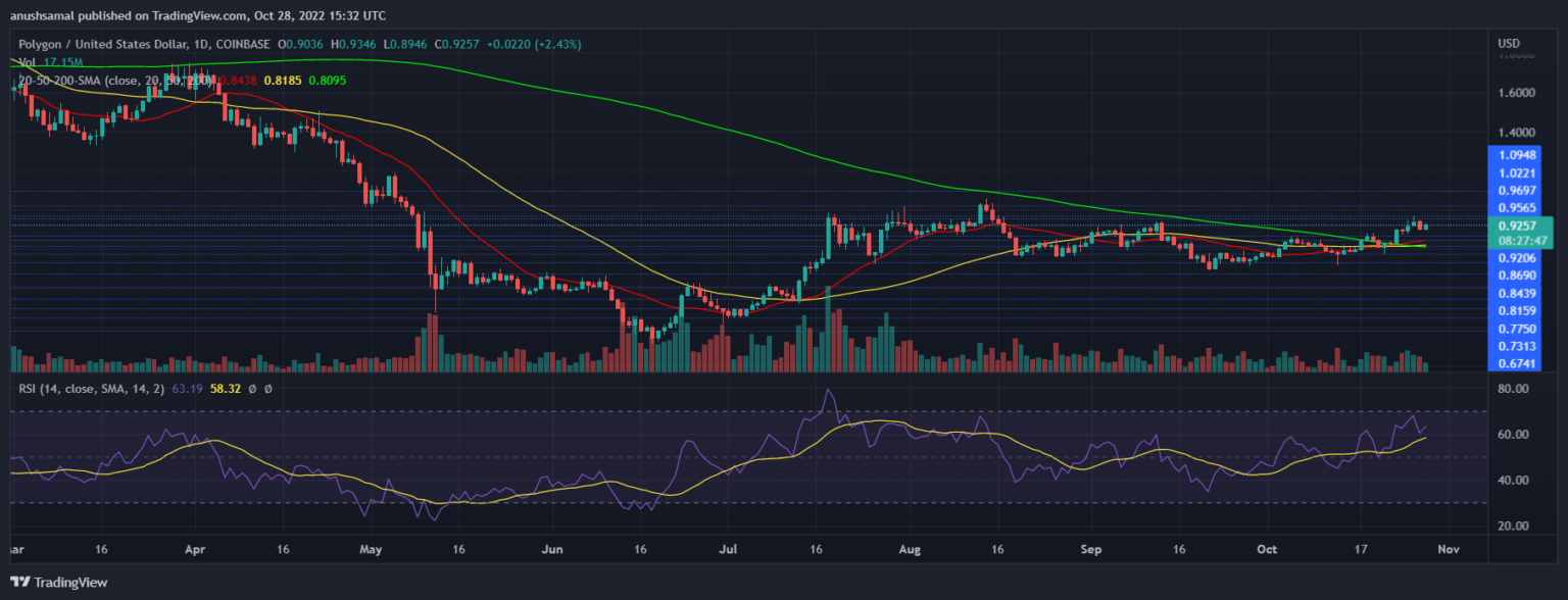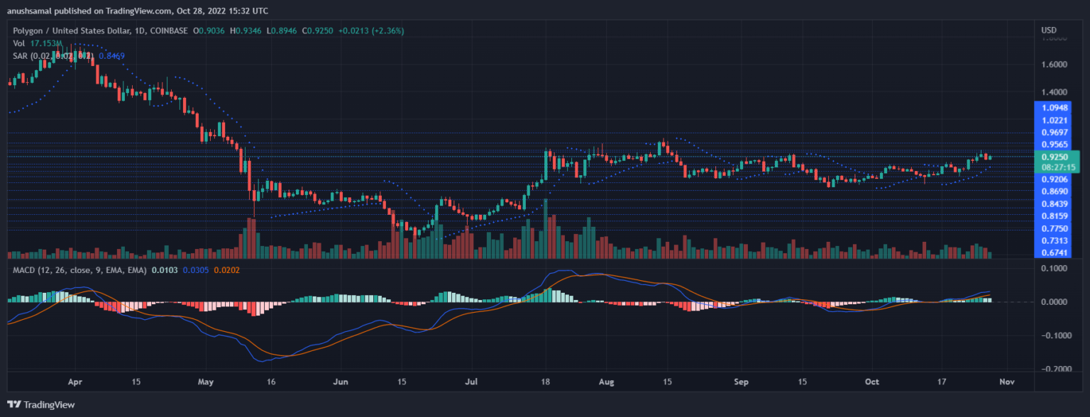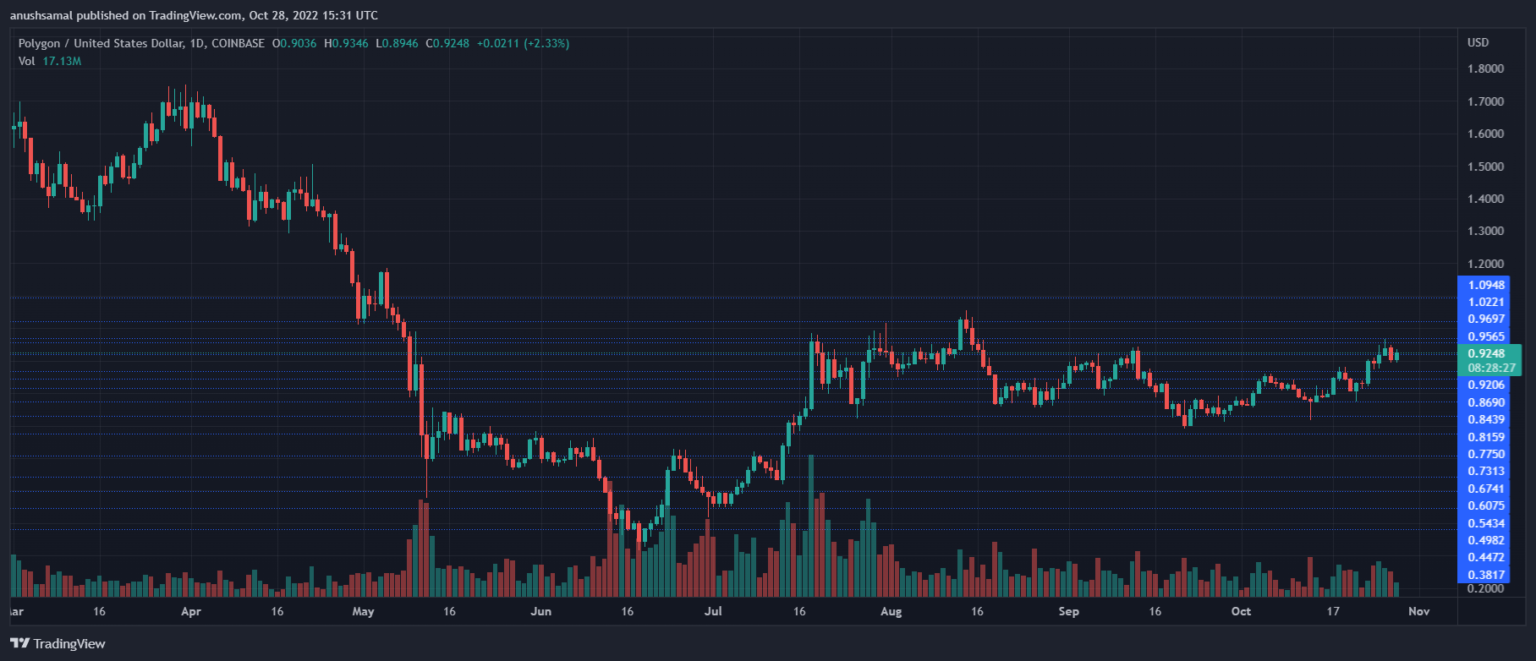 Polygon is still among those altcoins that have displayed the presence of bulls on their chart. It is crucial for Polygon price to trade above the $0.96 mark if it has to maintain its positive price momentum.
