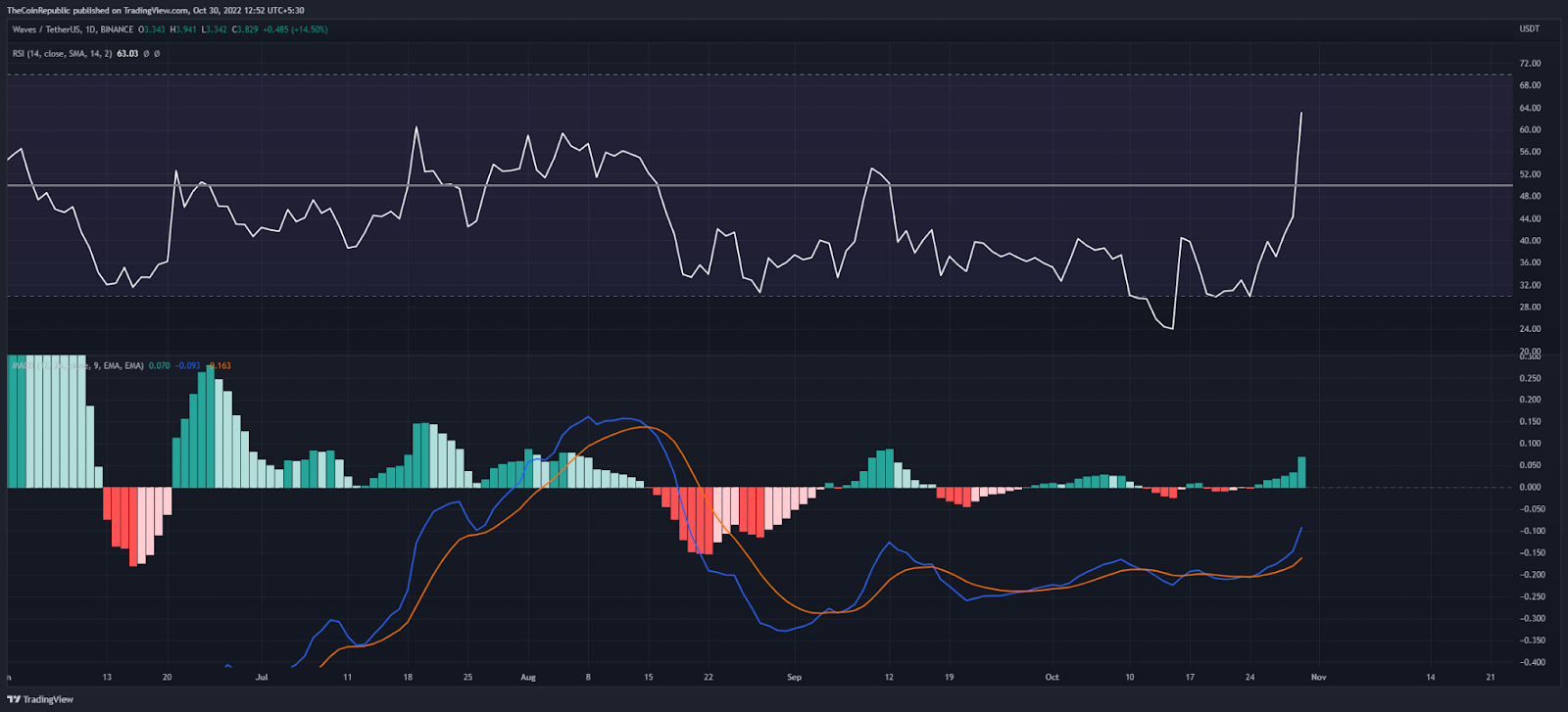 - Waves price is looking very bullish in intraday trading session as it is up by 17.19%.