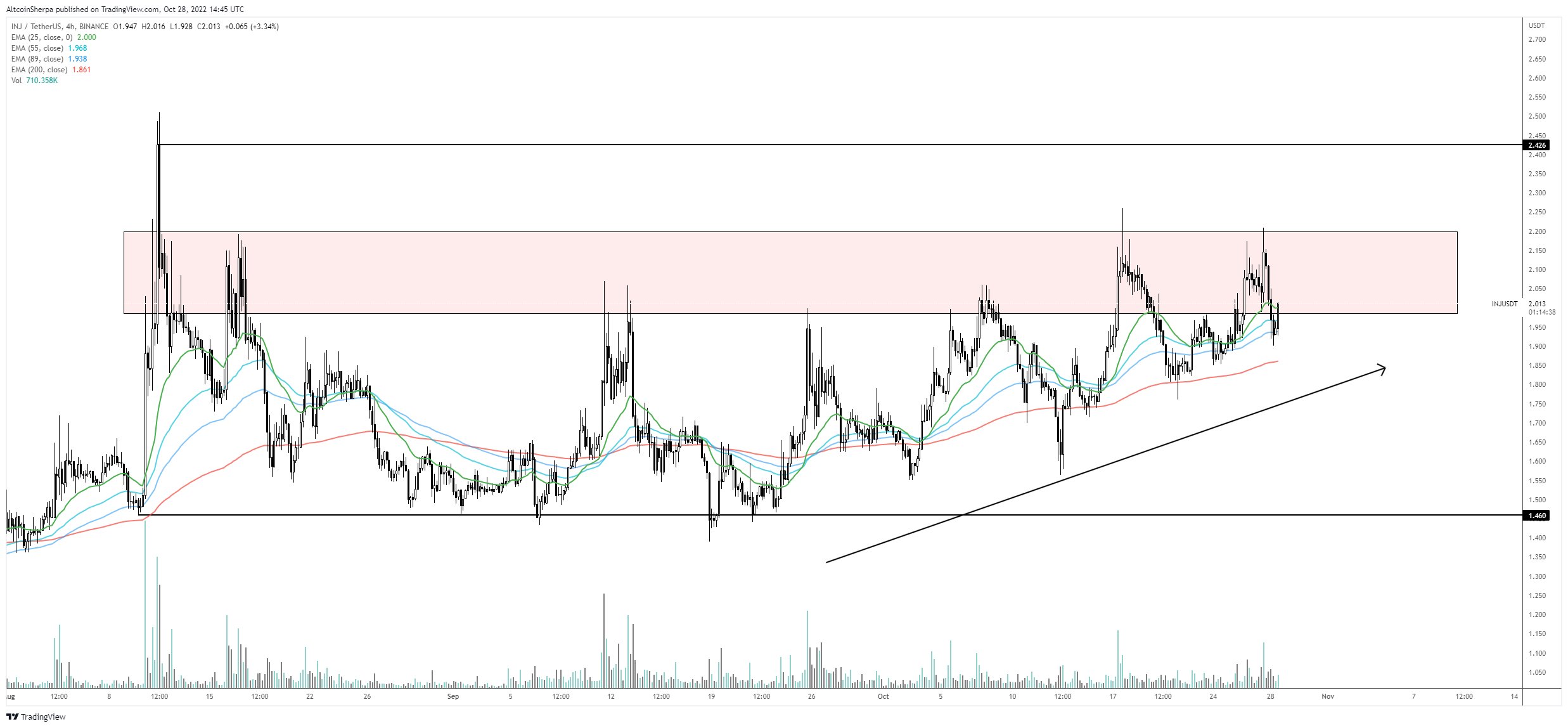 “INJ: one of the coins I’m eyeing. This overall supply zone has been very strong at $2.20. That said, it’s been tapped several times, and I’m still of the opinion it’s going to go to $2.40ish in the mid term.”