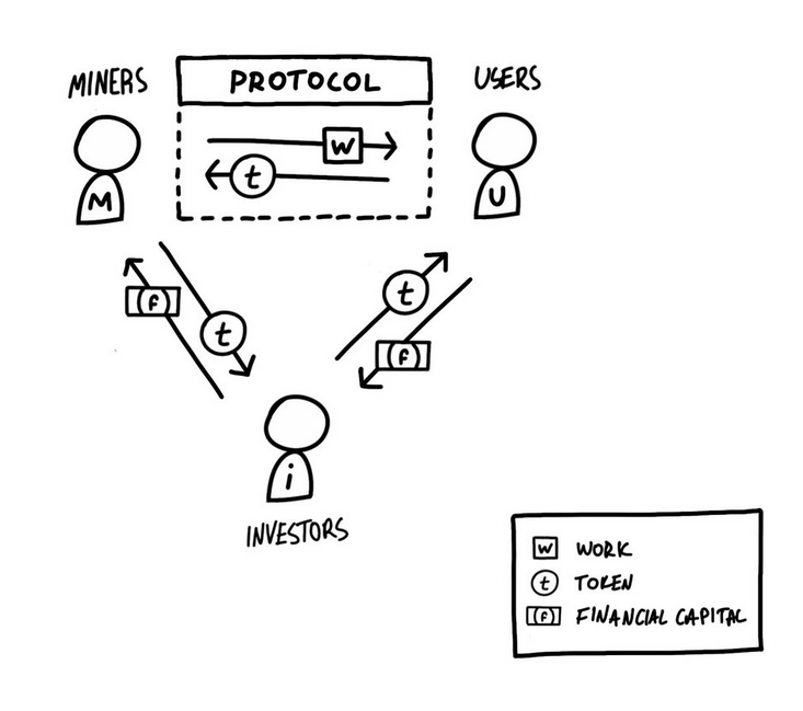 Besides this interaction between investors and miners, there is also an investor-user relationship. Investors usually expect the price of a token to appreciate as demand increases over time (i.e., as more users join the network).