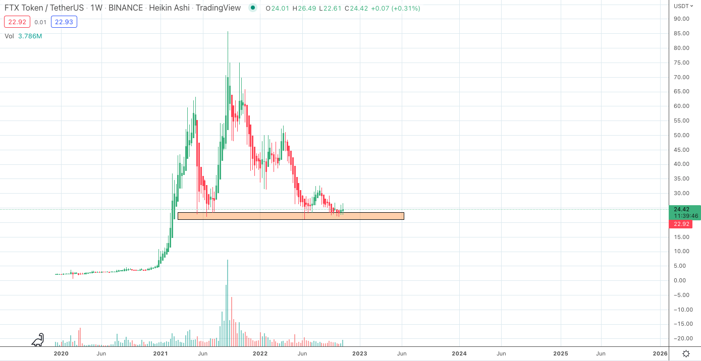 Still, independent market analyst Satoshi Flipper sees a potential FTT price rebound ahead as it retests a long-standing support range visible on the weekly chart below.