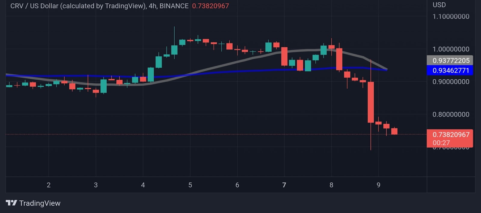 •CRV/USD is currently priced at $0.74 and has decreased by 19.08% over the past day