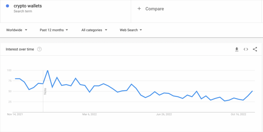There is also a recent spike in the search term ‘crypto wallets’ according to data from Google Trends.
