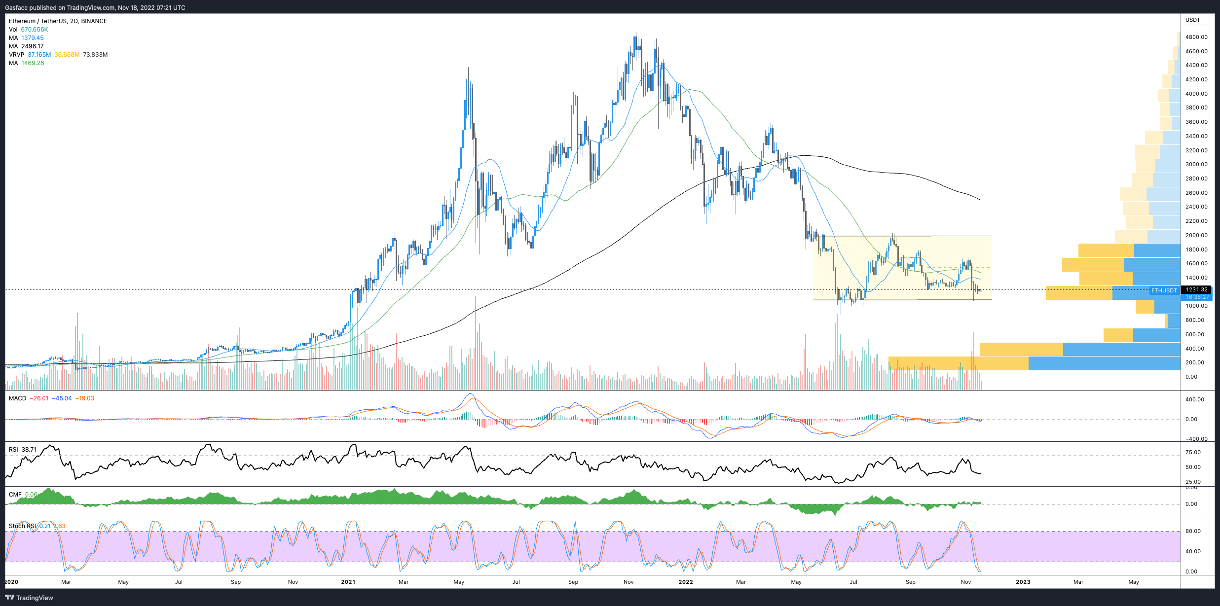 The thesis is pretty simple. ETH has held support around $1,200–$1,300 pretty well through all of the previous months of bearish market developments, but will the potential challenges mentioned above lead to a test of the level again?