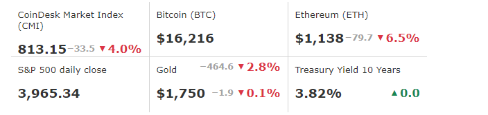 Bitcoin was recently down 2.8% over the past 24 hours (UTC), although it managed to hold snugly well above its most recent $16,000 support for a 12th consecutive day. Last week, the largest cryptocurrency by market capitalization weathered the cascade of misadventures tied to crypto exchange FTX's collapse, although Joe DiPasquale, CEO of crypto fund manager BitBull Capital, wrote in an email to CoinDesk that investors should gird themselves for a rocky week ahead.
