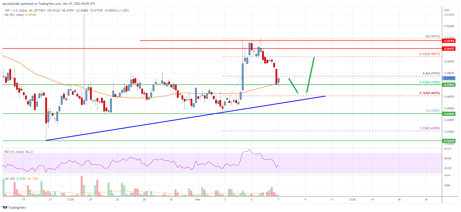 The price even traded below the $0.3750 level. There was a break below the 50% Fib retracement level of the upward move from the $0.3235 swing low to $0.3987 high. Besides, there was a break below a connecting bullish trend line with support near $0.3875 on the 4-hours chart of the XRP/USD pair.