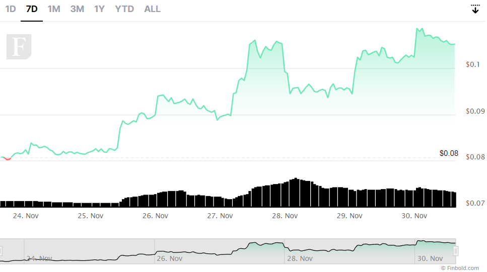 At the time of publication, the price of Dogecoin stood at $0.1042, indicating an increase of 2.71% over the previous day and a solid 29.38% push over the week, as it recoils from the 14.78% hit it suffered during the last 30 days.