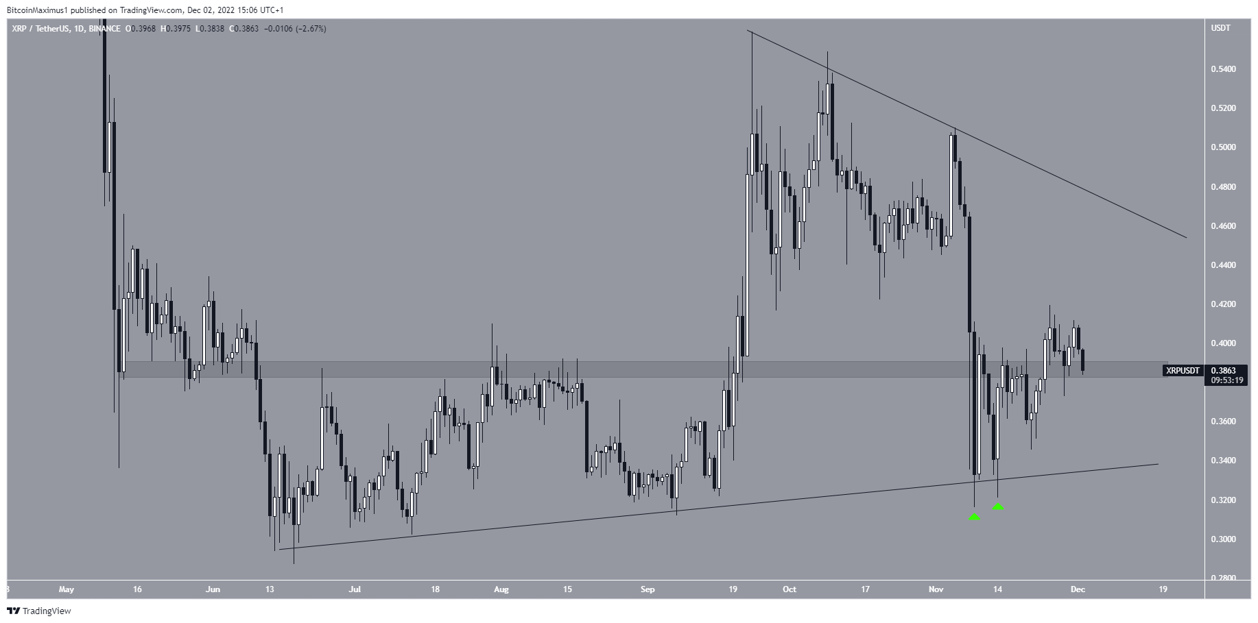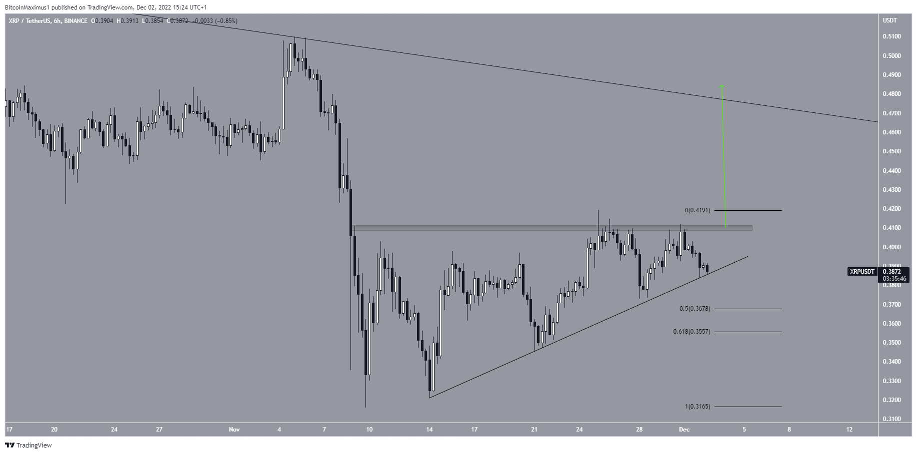 The price movement from the six-hour time frame is more bullish. It shows that XRP has followed an ascending support line since Nov. 14 and is possibly trading inside an ascending triangle. The ascending triangle is considered a bullish pattern, meaning that it is expected to lead to breakouts most of the time.