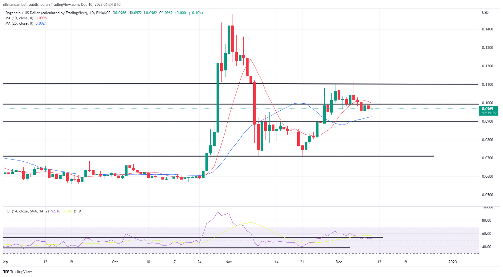 Following a move to a high of $0.09858 yesterday, DOGE/USD dropped to an intraday low of $0.096 on Saturday.