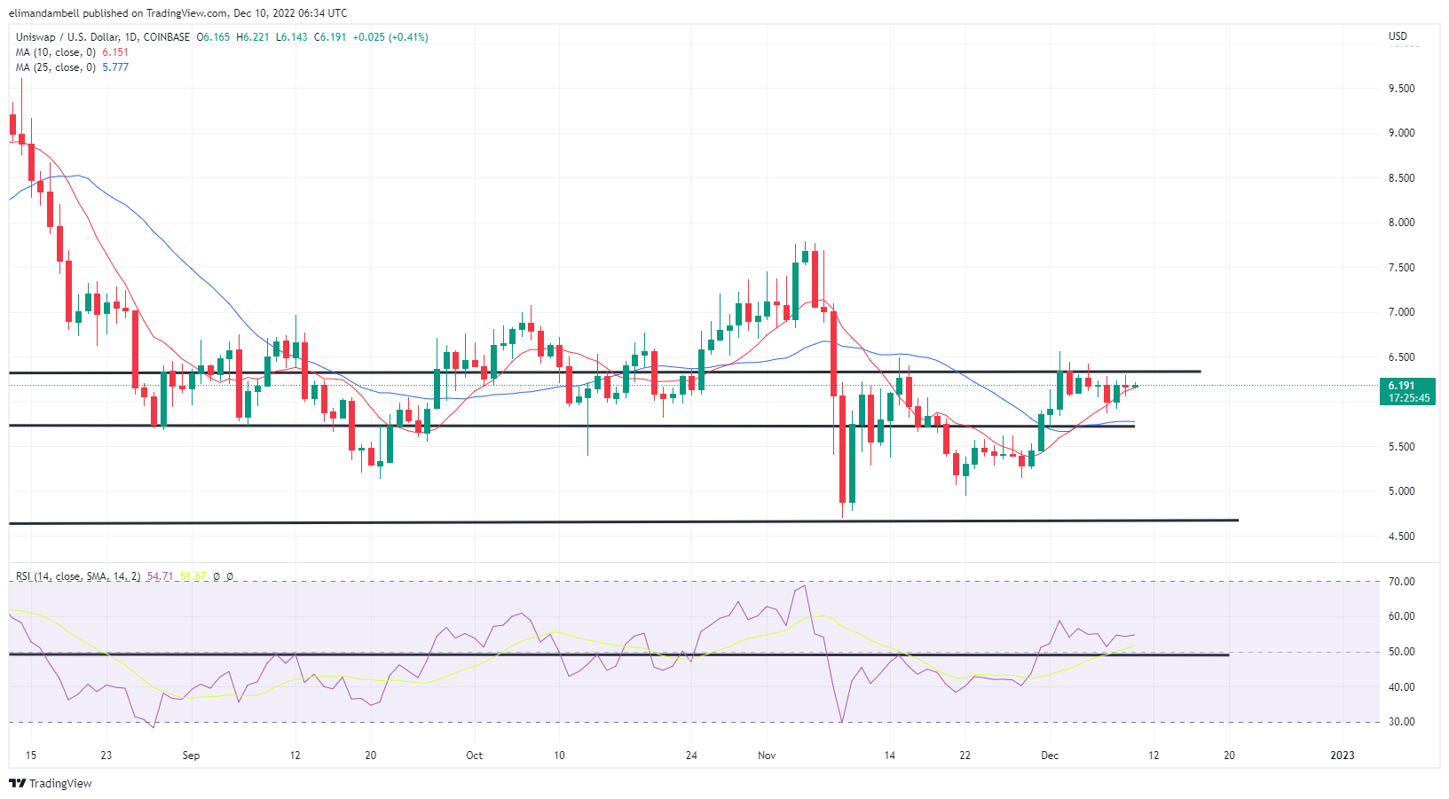 After sinking to a bottom of $6.10 on Friday, UNI/USD marginally rebounded, climbing to a high of $6.27 in the process.