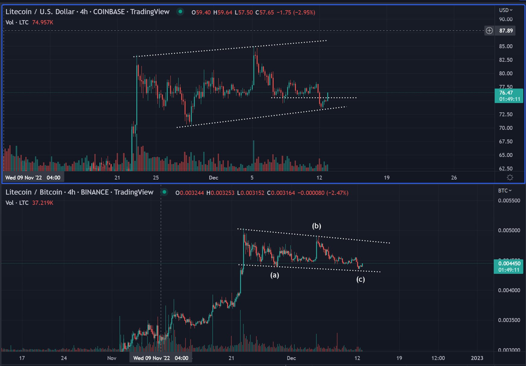 “Like BTC and ETH, I’m back in LTC on this structure reclaim. LTC/BTC also looking like a bullflag in an uptrend on four-hour [chart] so I suspect it outperforms BTC on this next leg up.”