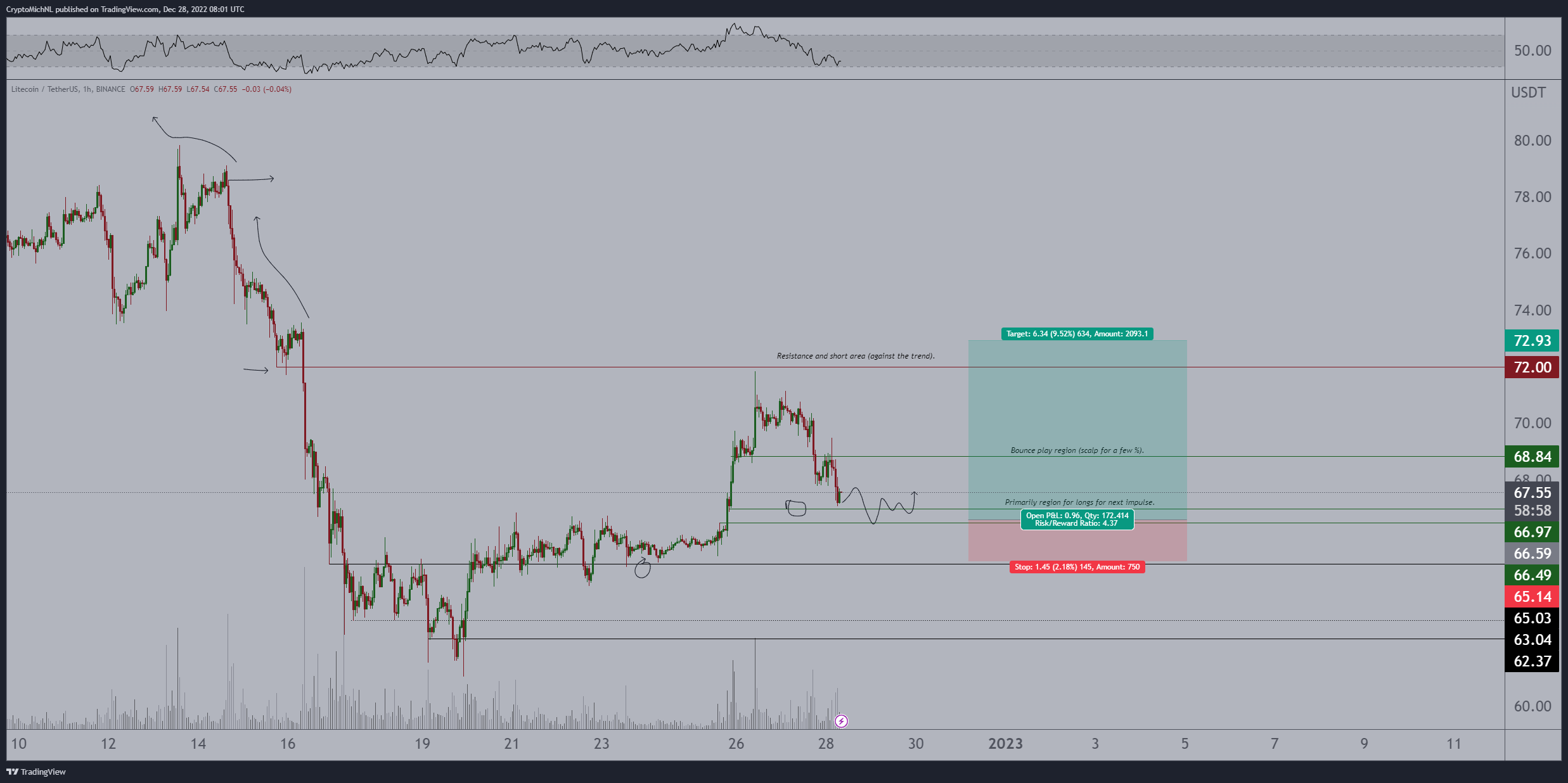 Looking at Litecoin, Van de Poppe says the payments-focused crypto is approaching a price zone that would be ideal for potential long trades.