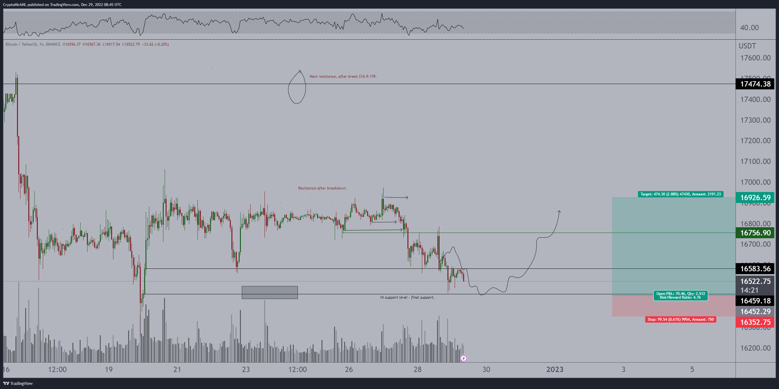 Looks to be we’re testing the block around $16,400 again for Bitcoin.