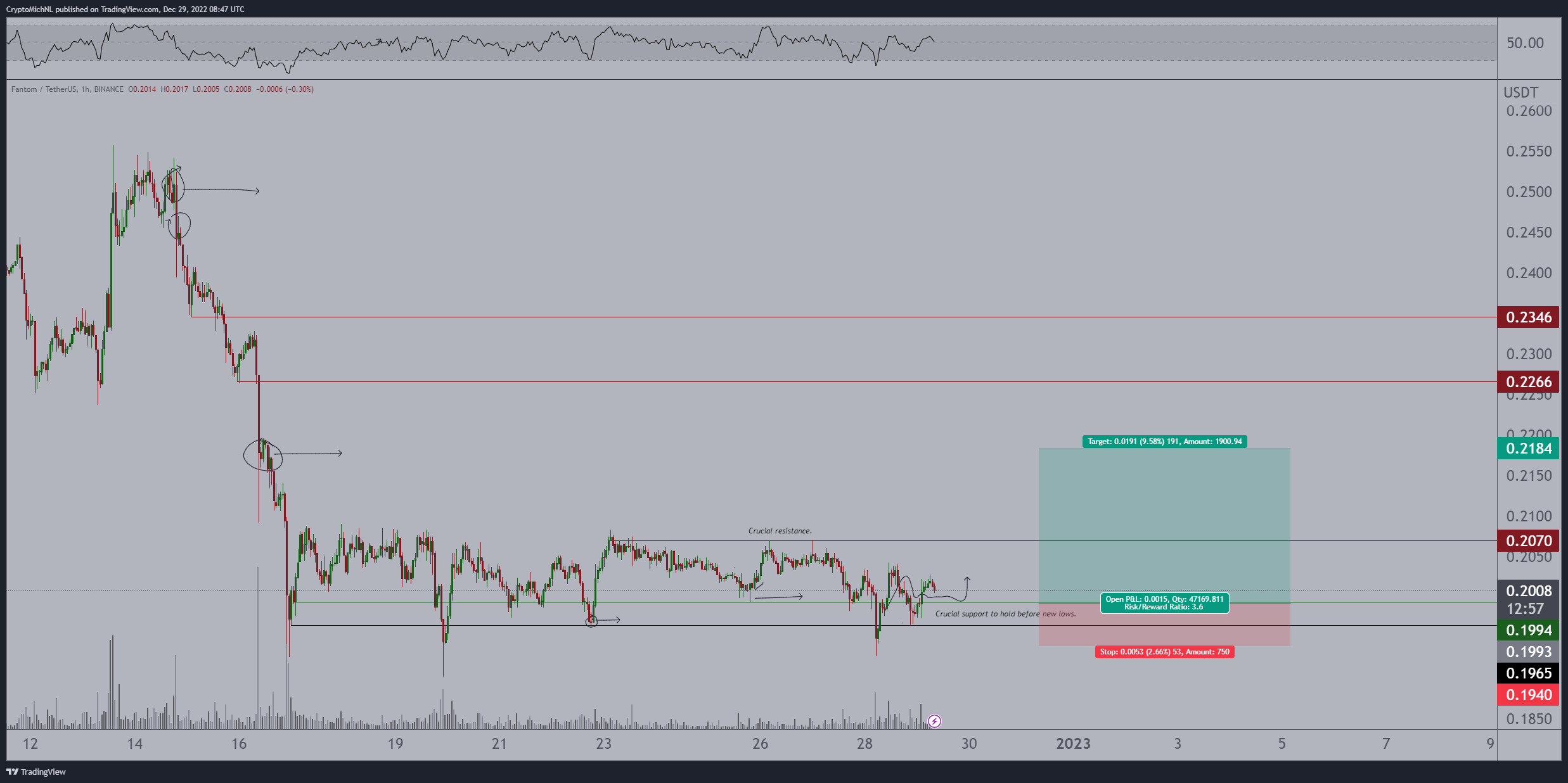 The trader also analyzes layer-1 blockchain Fantom, naming two important price levels for FTM.