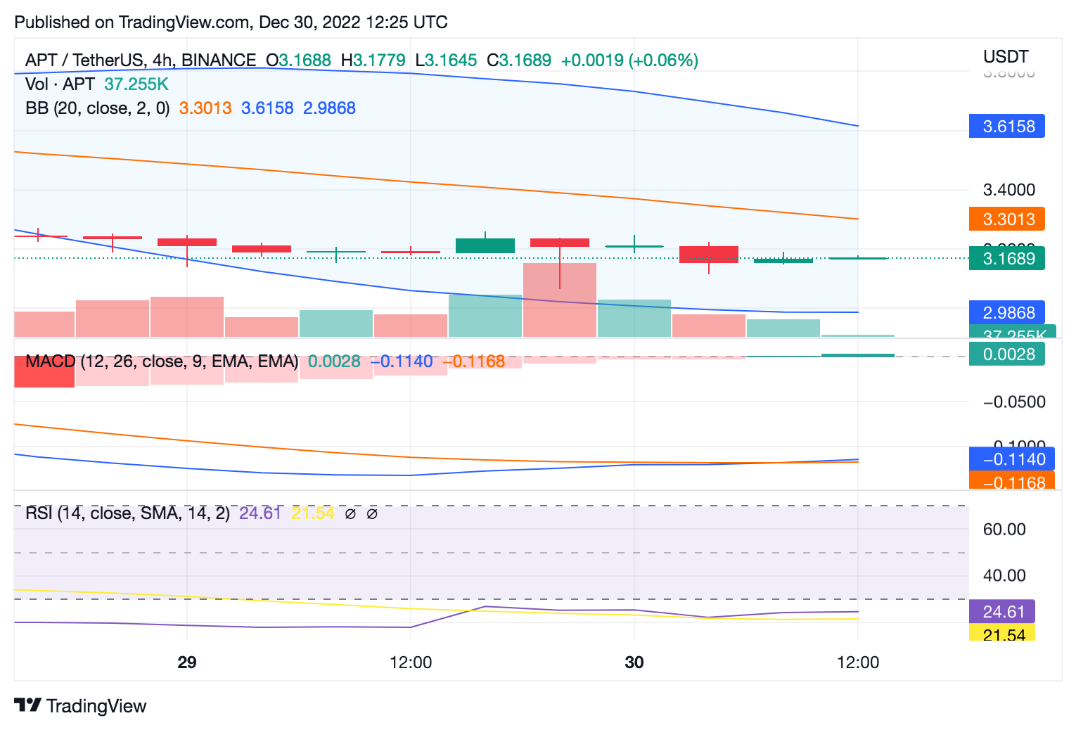 The bulls have started to show positive signs of a market reversal to a bullish trend on the four-hour chart. They have pushed the price up to $3.16 in the near term and would make APT surge past the current resistance level at $3.2071.
