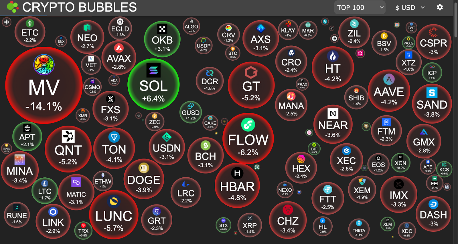The leading cryptocurrencies, Bitcoin and Ethereum, had a slow day with minimum volatility. Bitcoin is trading 0.7% down from today’s opening; likewise, Ethereum is trading nearly 0.6% down from the opening price. But Solana had a disruptive trading day.