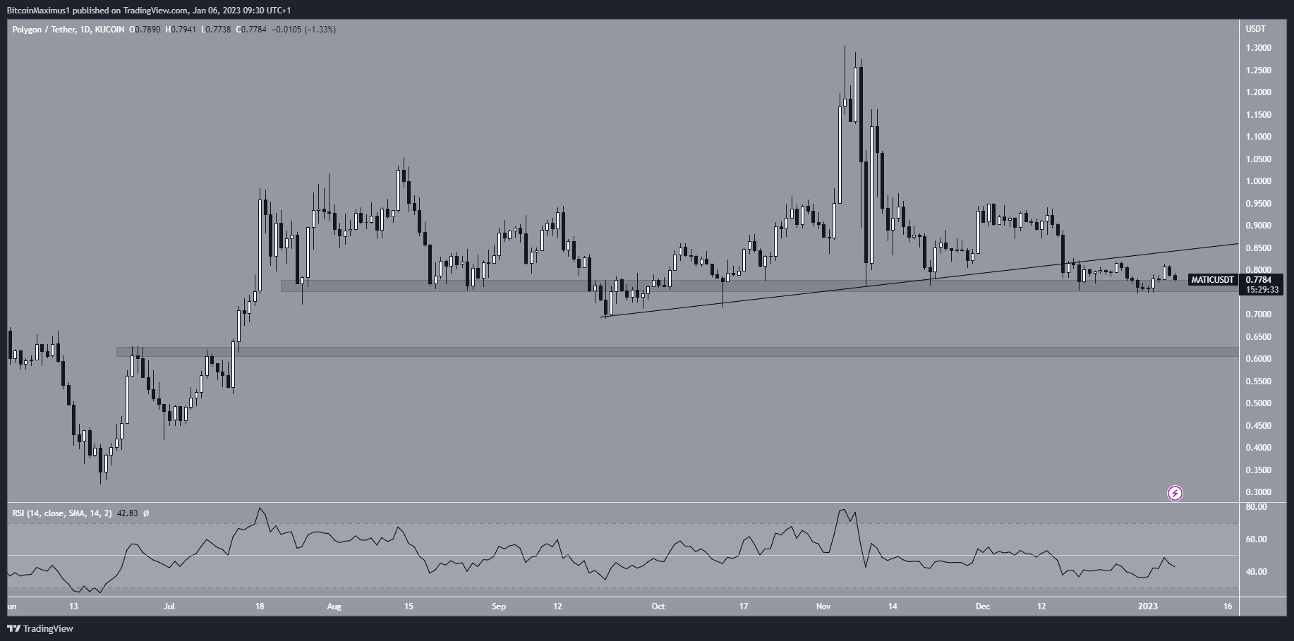 The Polygon price has fallen since reaching a high of $1.30 on Nov. 5. On Dec. 17, the downward movement caused a breakdown from an ascending support line in place since Sept. 19. This is a bearish sign that suggests the upward trend might have come to an end.