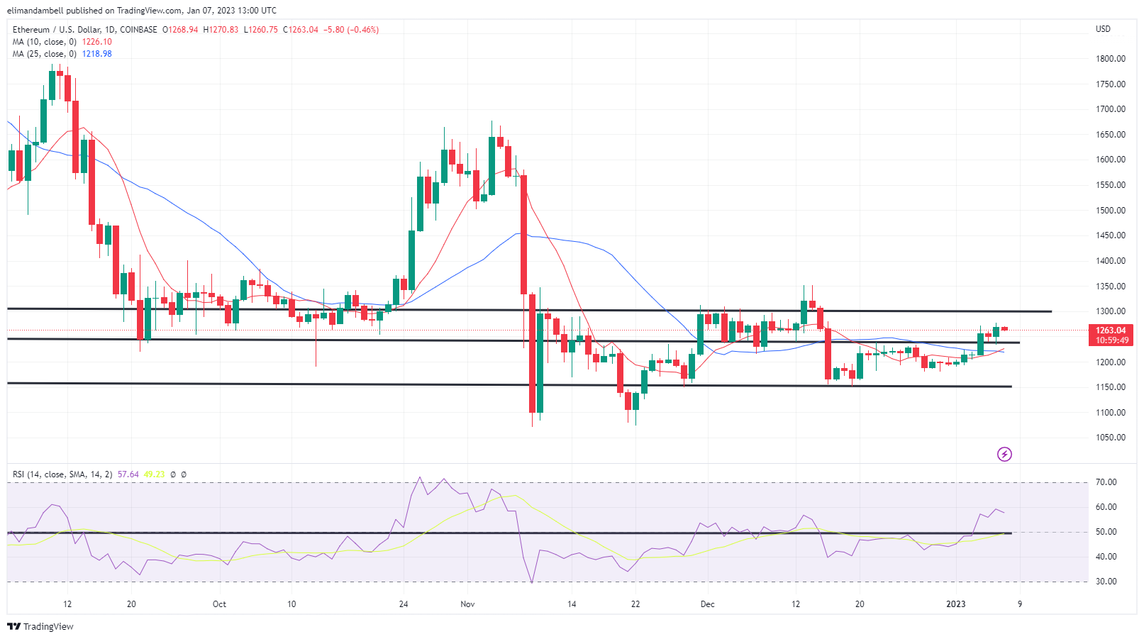 Following a low of $1,240.95, ETH/USD raced to an intraday high of $1,273.22, which is its highest point since December 17.
