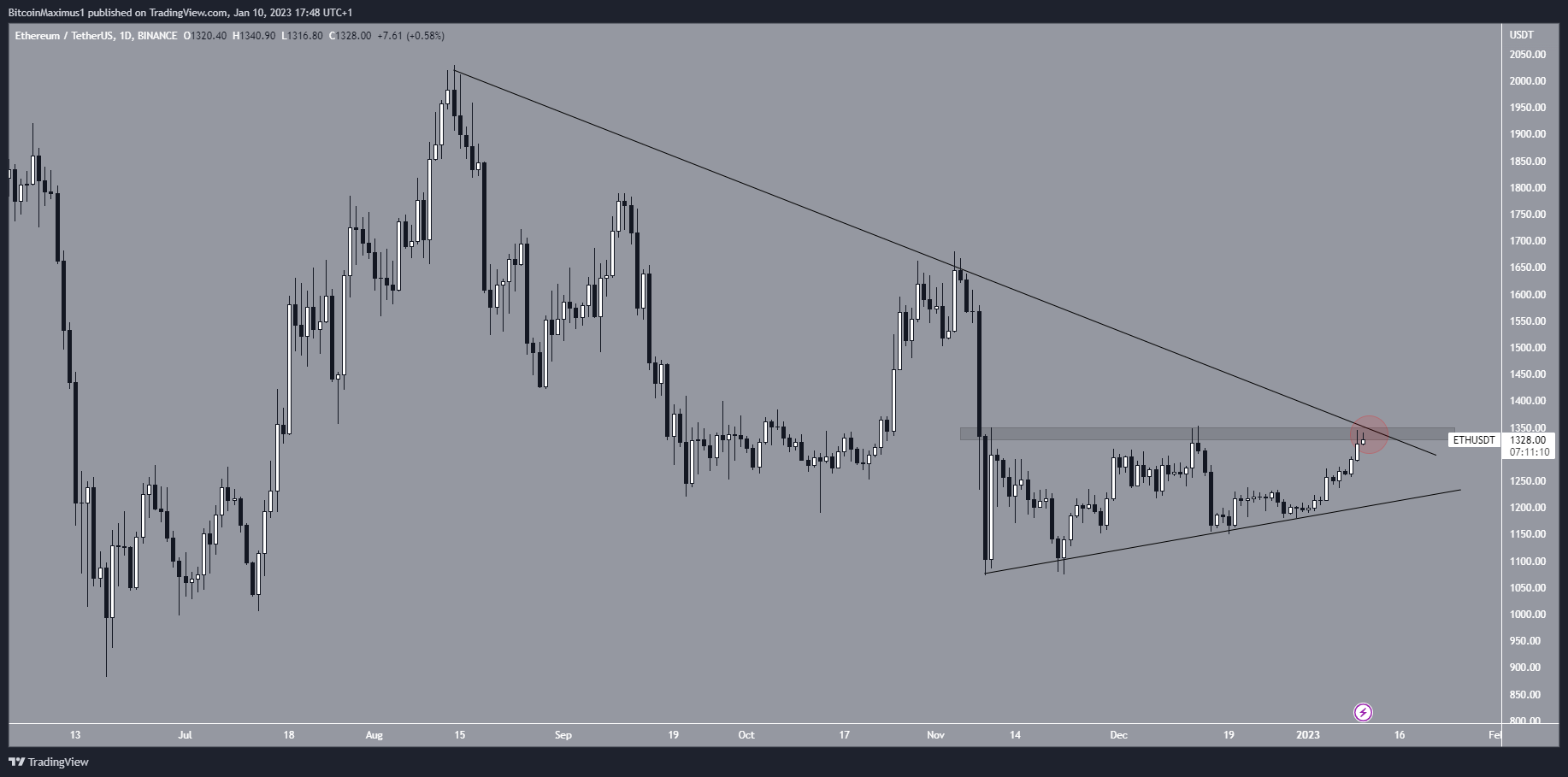 Currently, ETH is attempting to break out from a confluence of resistances at $1,330. The resistance is created by the aforementioned resistance line and the $1,330 horizontal resistance area. As a result, a breakout above it could confirm the bullish ETH price forecast.