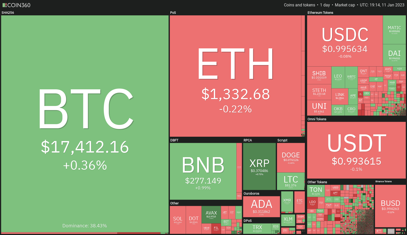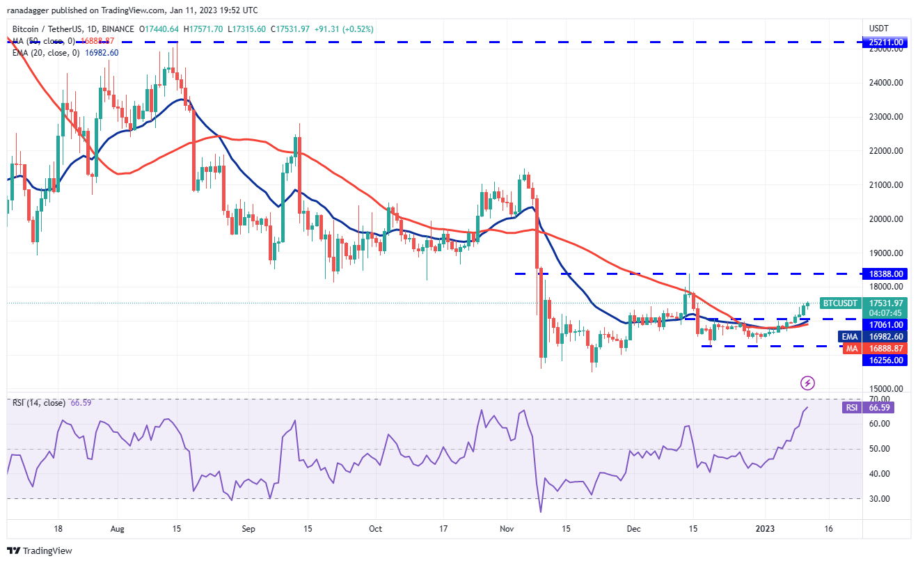 The bears tried to stall the recovery near $17,400 on Jan. 9 but they could not sink the price below $17,061. This suggests that bulls are buying on minor dips. The price bounced on Jan. 10 and the buyers are trying to extend the relief rally.