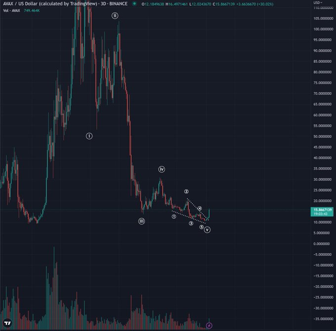 “Now that AVAX broke out of that high timeframe ending diagonal with a god candle, it does look like a bottom to me.