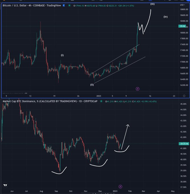 Price action looks impulsive to me now and I also believe with BTC on the cusp of taking out the December high, BTC dominance will rise and BTC outperform altcoins.”