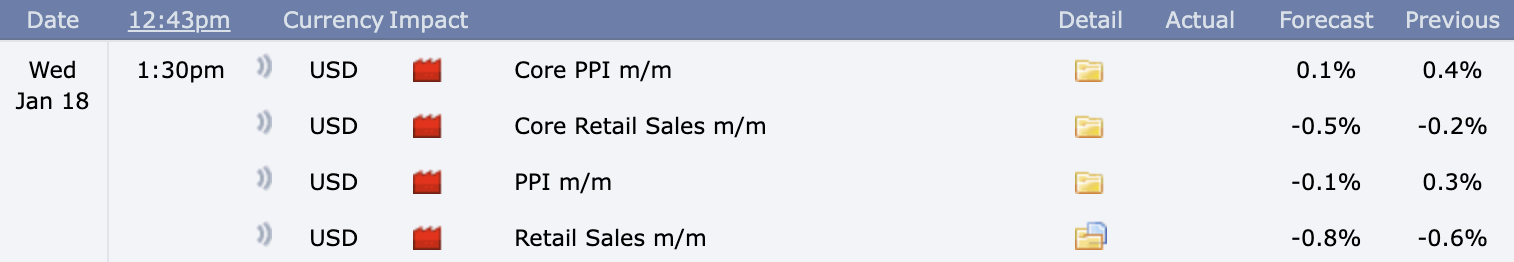 While the PPI is perhaps the best indicator for where inflation is going, the change in retail sales expected on Wednesday will also give an indication of how the economy is doing. The number is expected to come in at -0.8%, down further from -0.6% a month earlier.