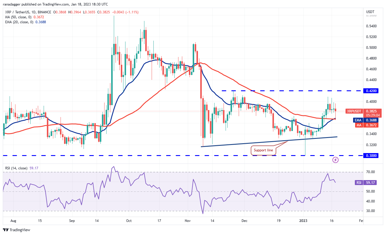Bitcoin rose above the overhead resistance of $21,480 on Jan. 17 and Jan. 18 but the bulls could not sustain the higher levels as seen from the long wick on the candlesticks. This shows that the bears are protecting the level.