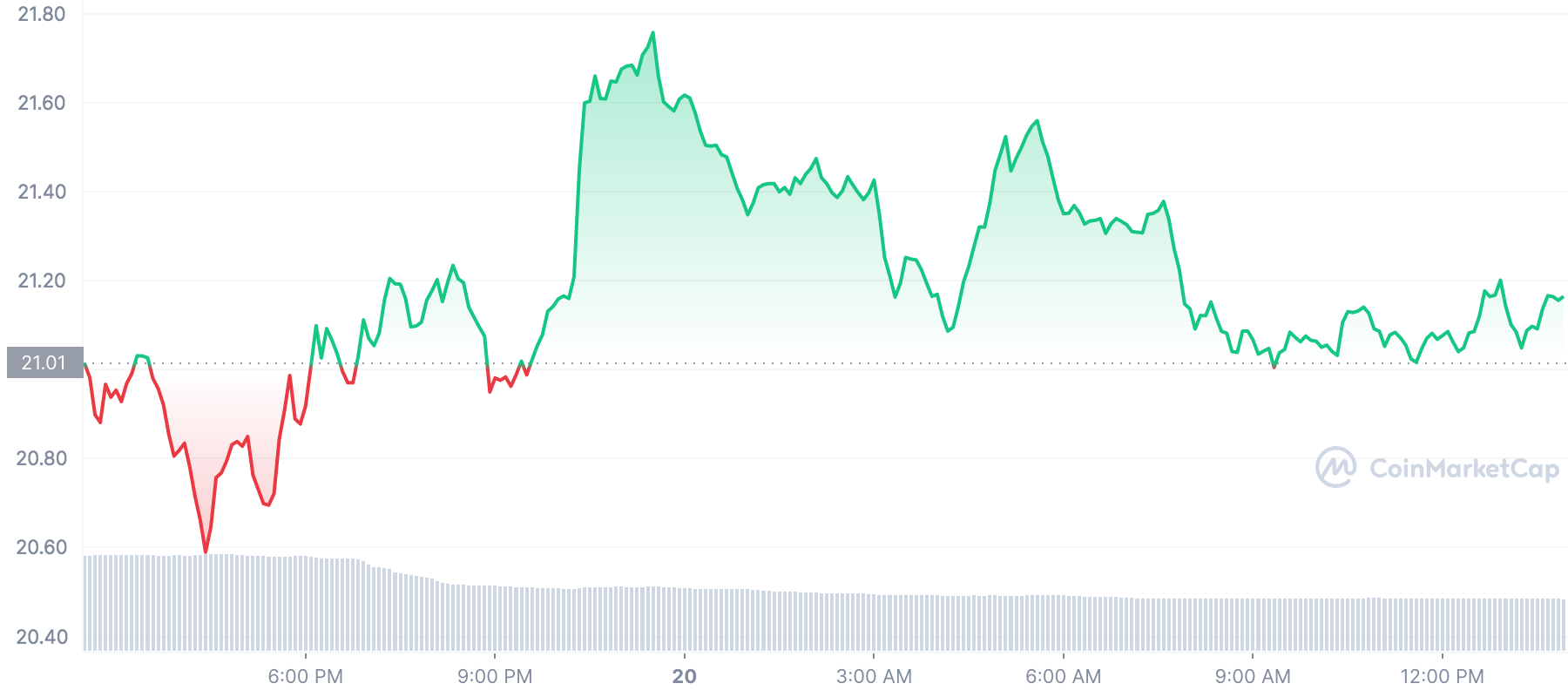 On a 4-hour price chart, the coin has been forming higher highs and higher lows, which suggests that the bulls are in charge of the market. Since the bulls are in charge of the market, it is expected that the market will stay at $21.31 for the ensuing four hours.