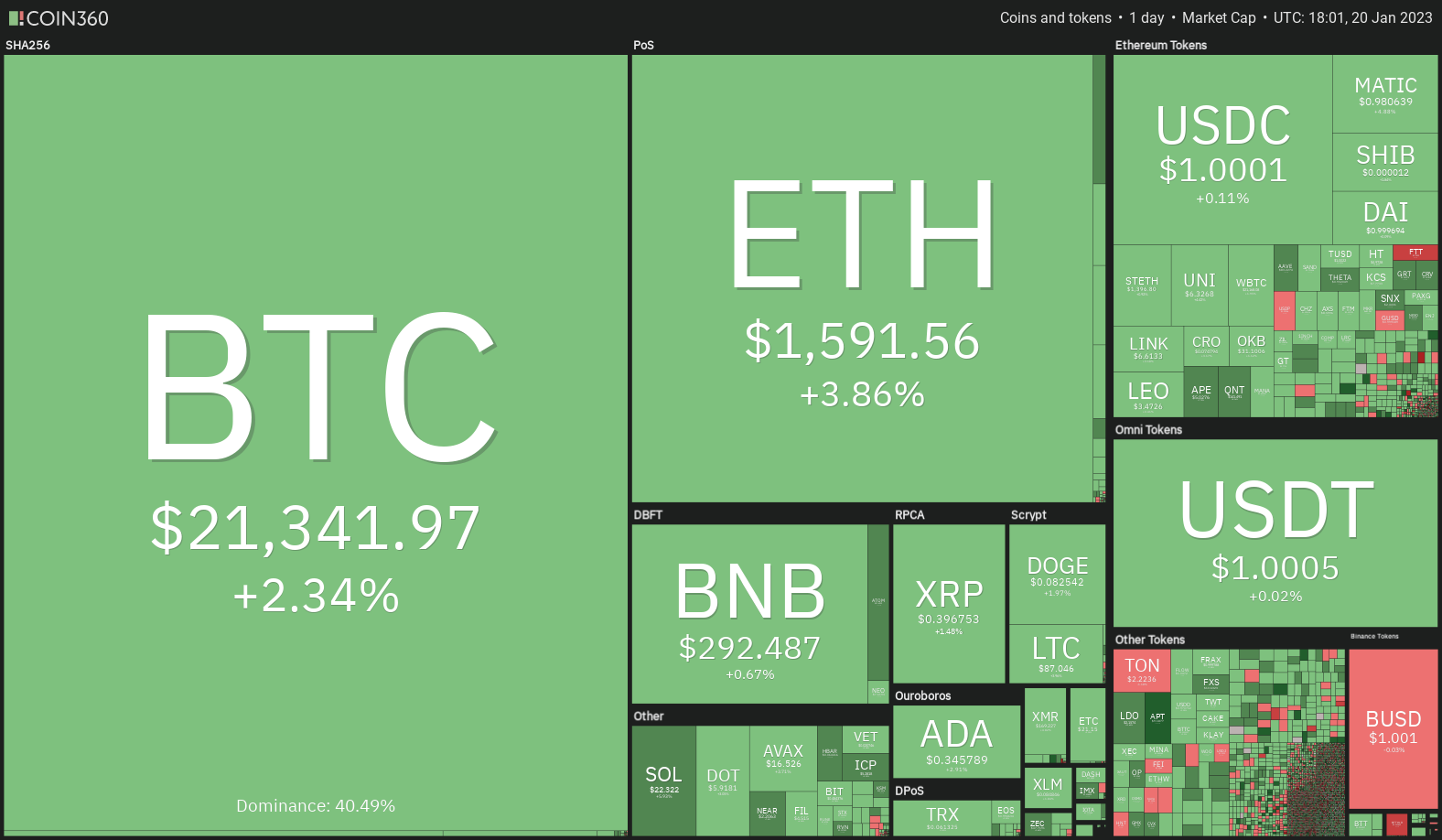 The sellers tried to start a deeper correction in Ether but the bulls purchased the dip near $1,500 on Jan. 18. This shows that the bulls are buying on minor pullbacks.