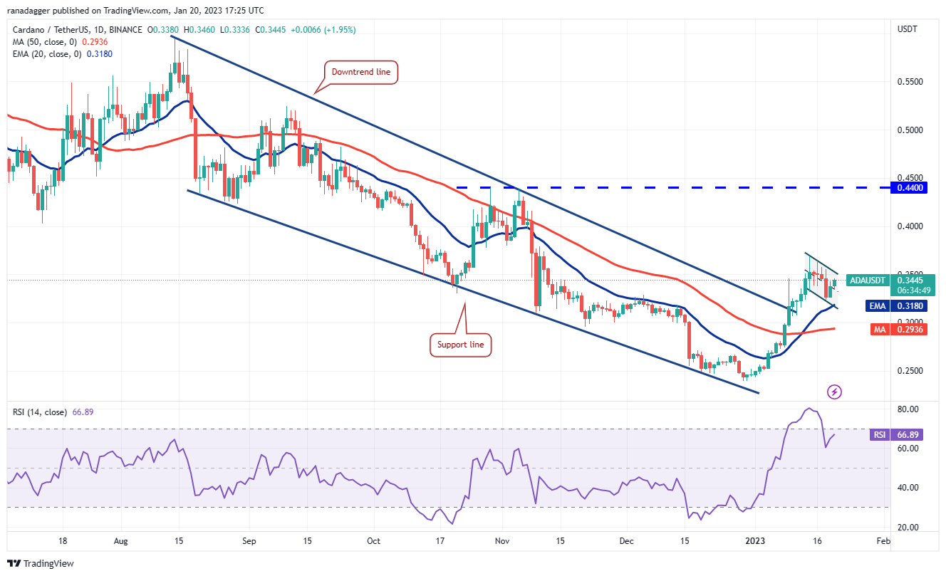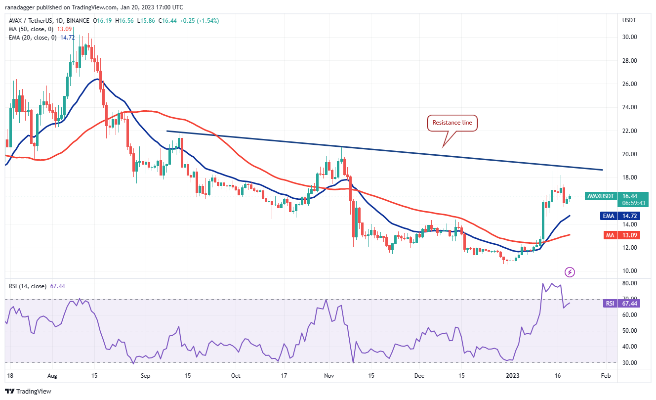 Avalanche (AVAX) turned down from the resistance line on Jan. 14 but the bears failed to pull the price to the 20-day EMA ($14.72). This suggests that the sellers may be losing their grip.