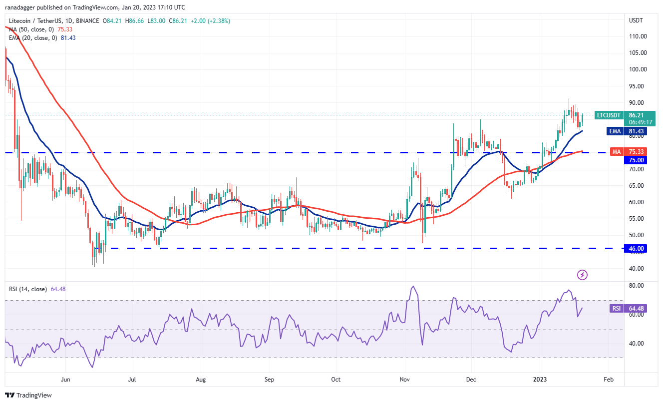 Litecoin (LTC) sprung back from the 20-day EMA ($81) on Jan. 19, indicating that the bulls are viewing the dips as a buying opportunity.