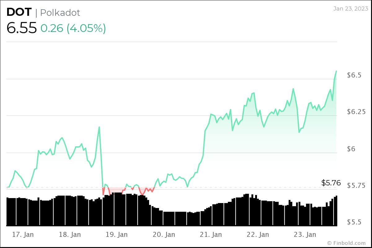Currently, $DOT is changing hands at $6.50, up 13.95% in the last week, and with increasing developments to the network, it makes it onto our list of cryptocurrencies to watch in February.