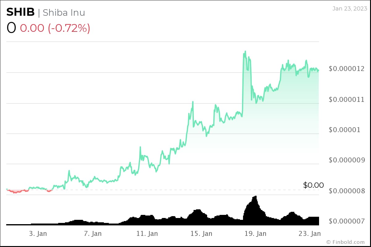 Shiba Inu’s growth may have been aided by an optimistic crypto market and favorable developments in its ecosystem, such as the $SHIB team unveiling key concepts of the long-awaited layer 2 blockchain Shibarium making it one of the tokens to watch in February.