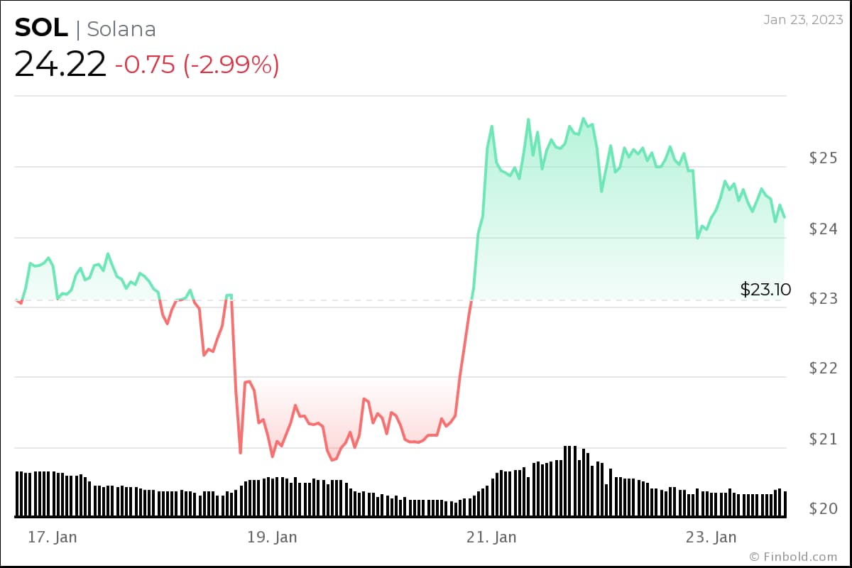 What’s more, Solana’s $NFT scene is still expanding rapidly, and innovations like GameFi are getting closer to fruition. Solana’s price has recovered from just under $10 at the start of January to trade above $24 as of January 23, up 7% in the last week.