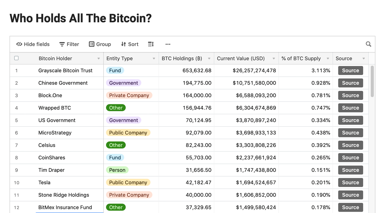 Some of the sources on the list of who owns all the bitcoin derive from tweets and other articles tied to the likes of Tim Draper and Michael Saylor. Unless these individuals prove ownership by moving the said quantities of bitcoin or they sign a message tied to the crypto asset’s private key, a list of these people with approximate bitcoin holdings is meaningless.