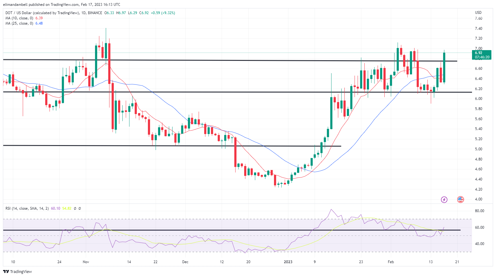 This resulted in polkadot breaking out of a long-term resistance point at the $6.75 mark, four days after trading at support of $6.15.