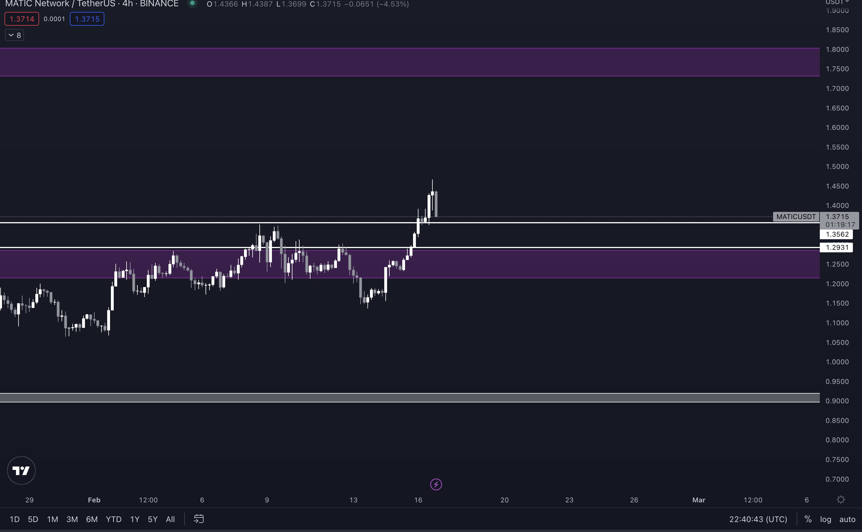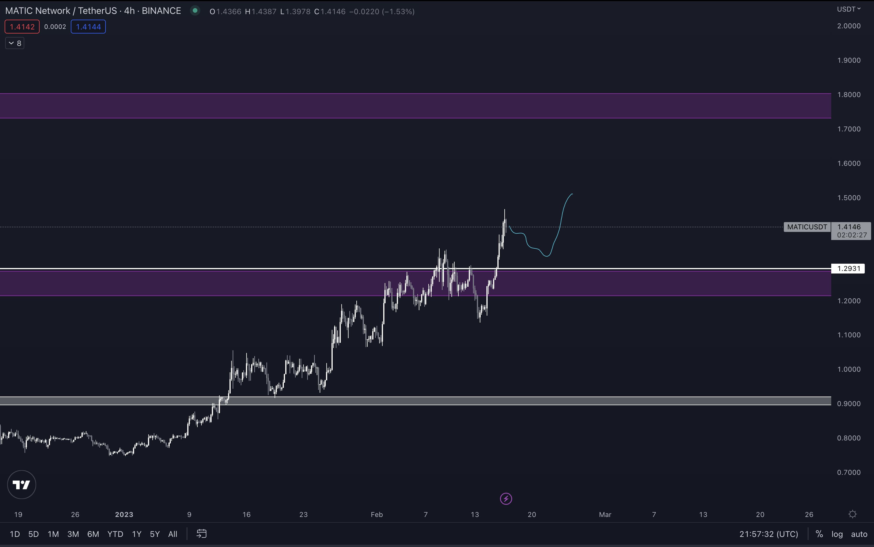 Looking at this chart, MATIC would need to exceed 0.0000650 BTC ($1.59), which it last hit in November 2022 to reach an ATH.