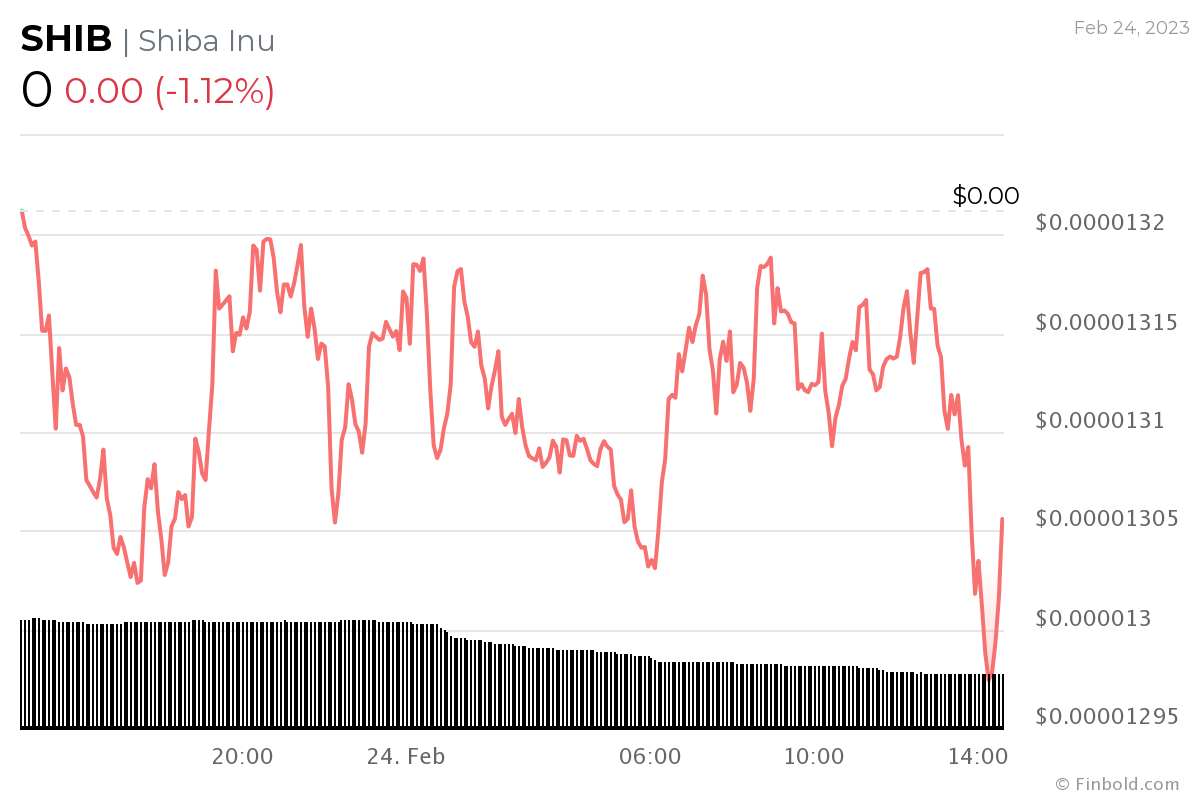 By press time, SHIB was trading at $0.00001303, recording daily losses of about 1.12%. On the weekly chart, Shiba Inu is down almost 1%.