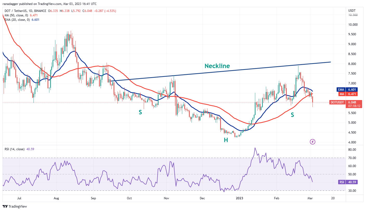 The bulls pushed Polkadot (DOT) back above the 50-day SMA ($6.47) on March 1 but they could not surmount the 20-day EMA ($6.60). This indicates that bears are selling on minor rallies.