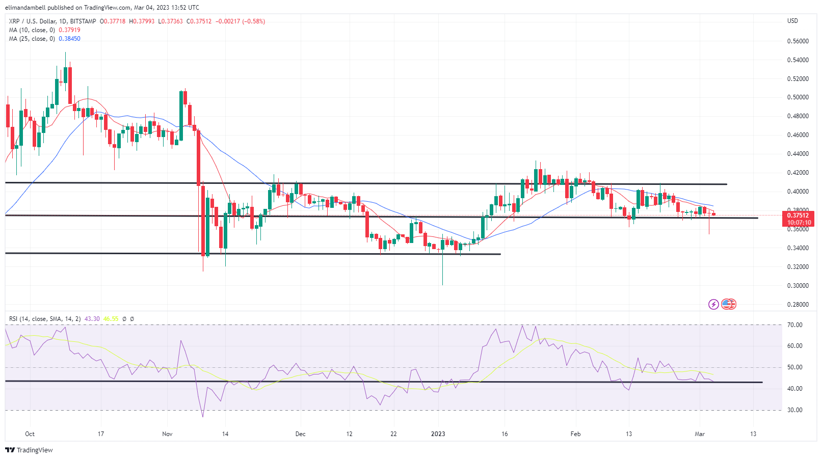 Yesterday’s drop saw XRP fall to its weakest point since January 11, when prices were at a low of $0.3477.