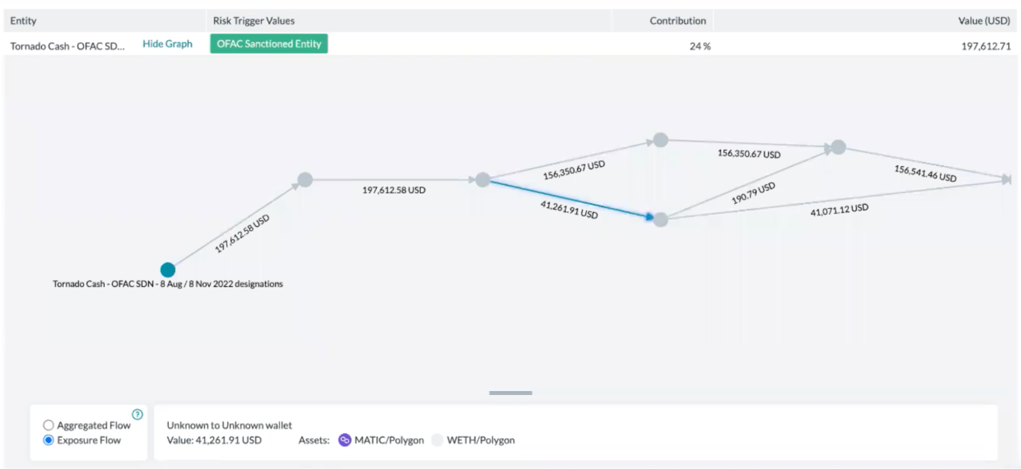 The most challenging scenario is where none of those techniques can be used. For instance, asset transfers to the Bitcoin Lightning Network from Ethereum can be opaque. In such cases, cross-bridge transactions can be treated like those into mixers and the dark web, and will generally be flagged by the algorithm due to the lack of transparency.