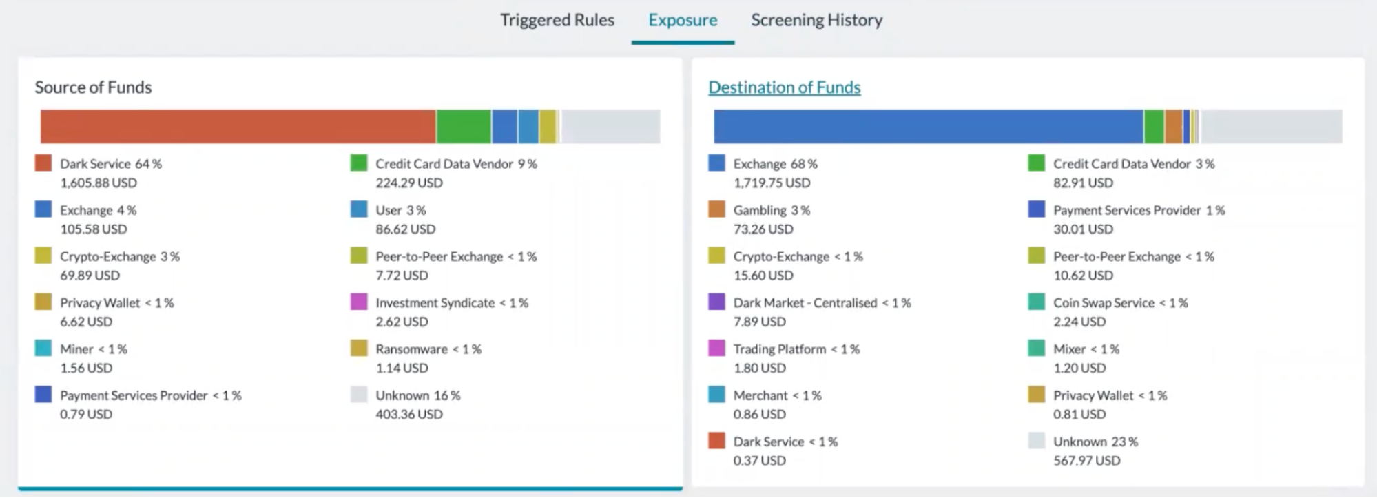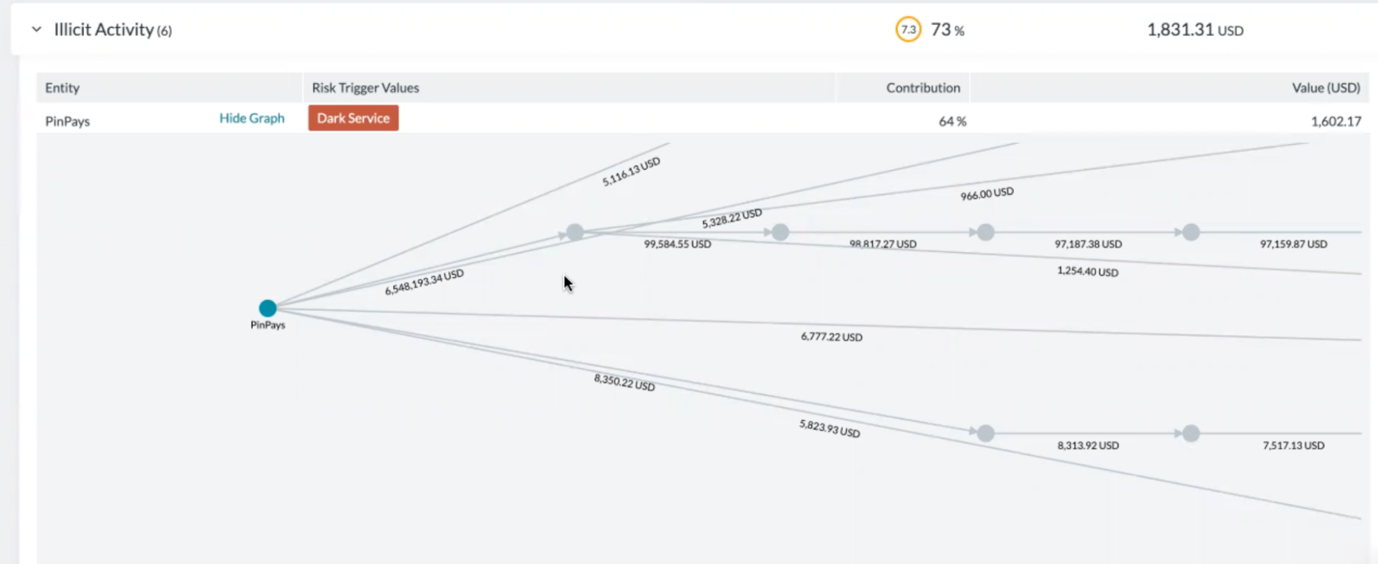 Platforms offer a pictorial hop chart showing every single hop a digital asset has taken through the network to get from the first to the most recent wallet. Platforms like Elliptic can identify transactions that even stem from the dark web.