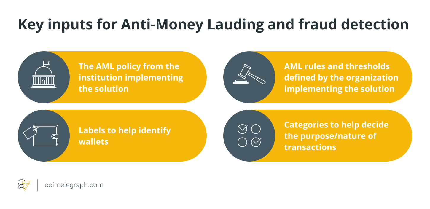 For these vendor platforms to deliver a holistic approach to AML around digital assets, they must have several inputs. The vendor provides several of these, while others are sourced from the bank or institution they work with.