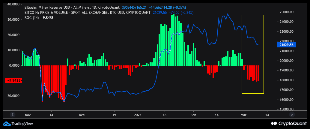 Meanwhile, BTC analyst Barovirtual, citing CryptoQuant data, said BTC miners were putting pressure on the asset. It noted that the miners had increased the pressure from March 1, which could decrease the asset’s value to either $19,500 or $16,600.
