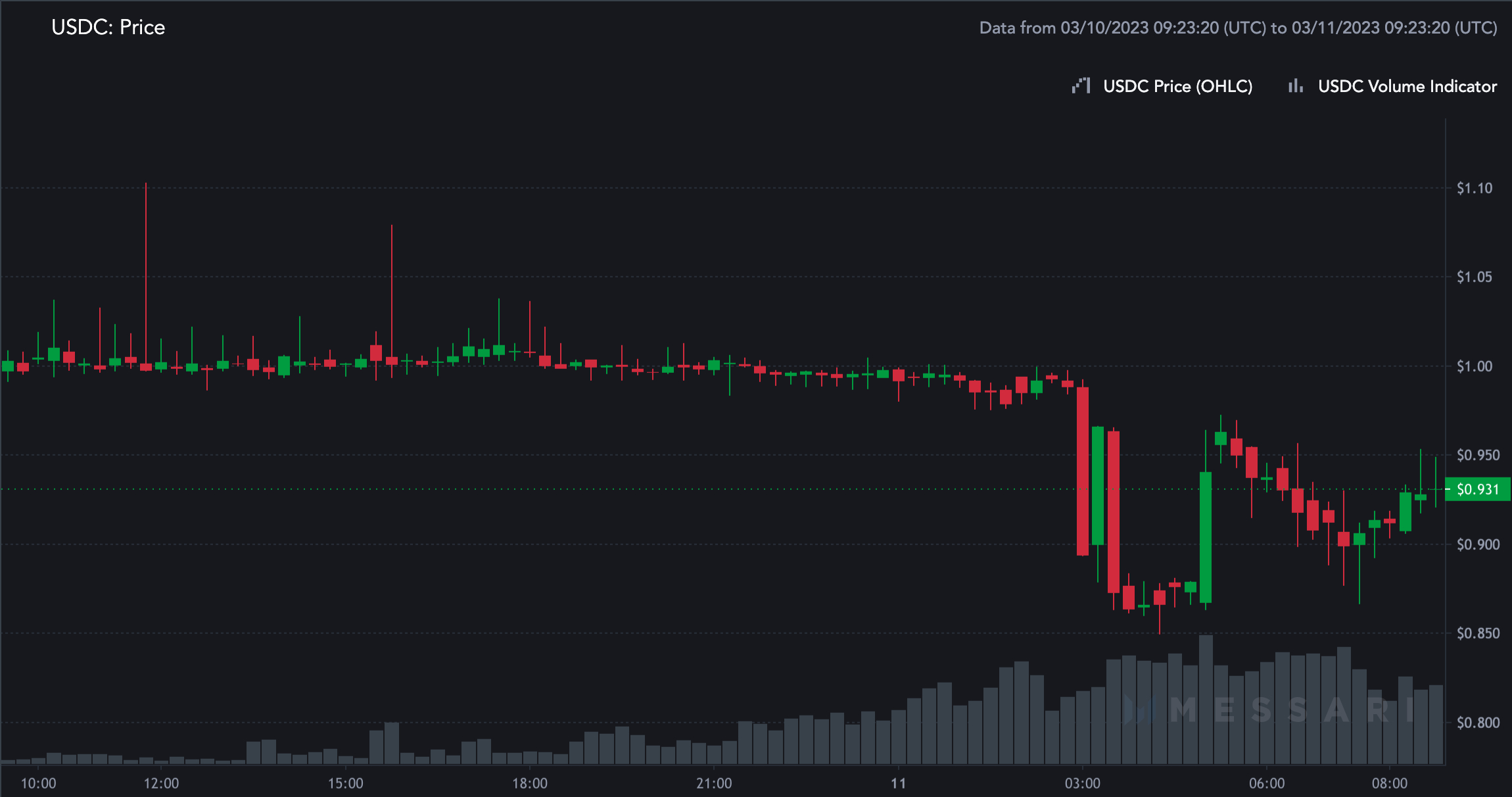 “I think that we will see a lot of volatility in USDC price over the weekend because USDC redemptions won’t work in that time – banks don’t work on weekends,”