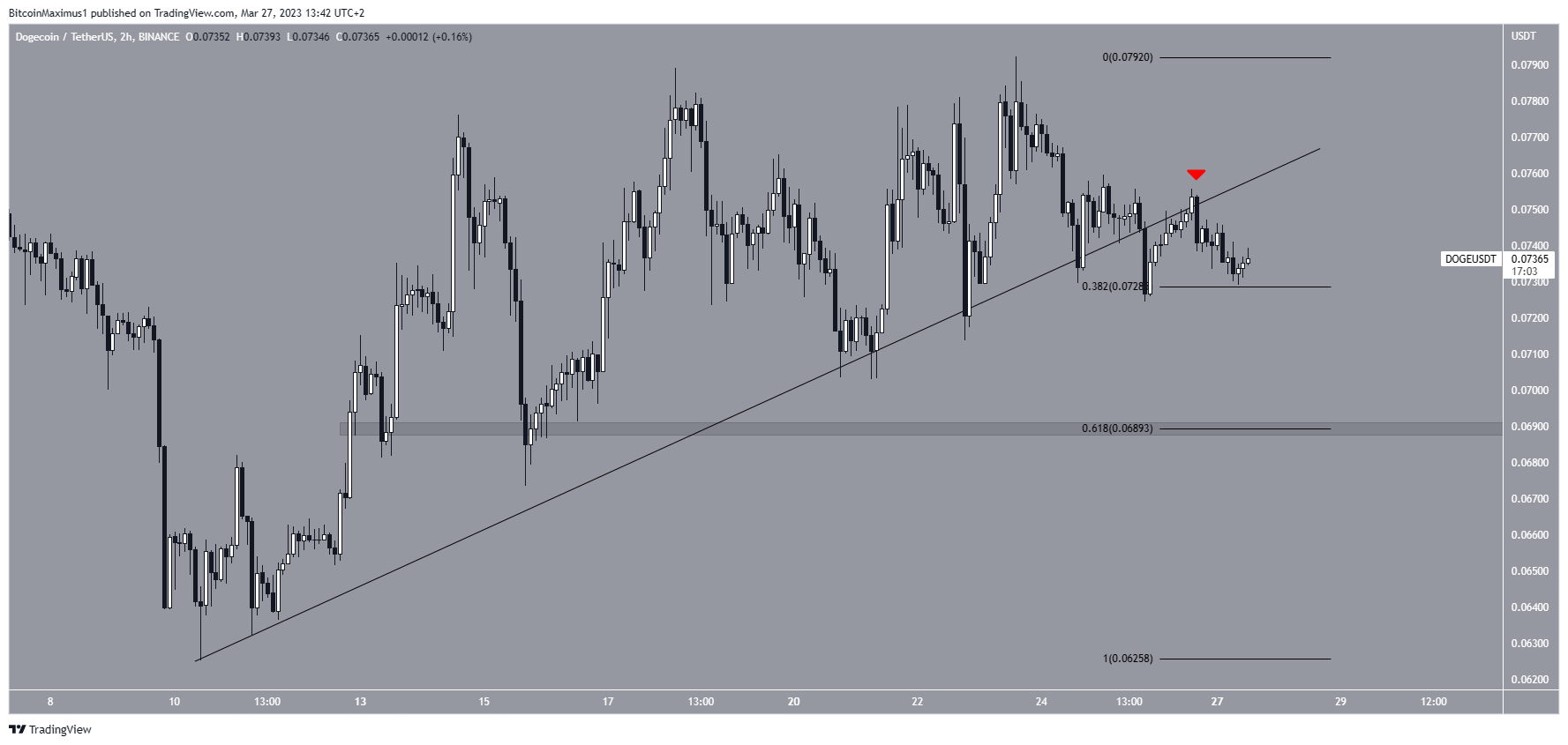 To conclude, the most likely DOGE price forecast is a breakdown from the minor support at $0.072 and a decrease to $0.069. However, if the price reclaims the previous ascending support line, it could increase to $0.100.