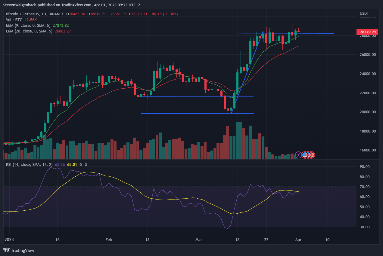 At press time, the price of Bitcoin (BTC) is up 1.93% in the last 24 hours according to CoinMarketCap. This 24-hour increase in the market leader’s price has added to its positive weekly performance – taking the total weekly gain up to 3.16%. As a result, the price of BTC currently stands at $28,412.42.