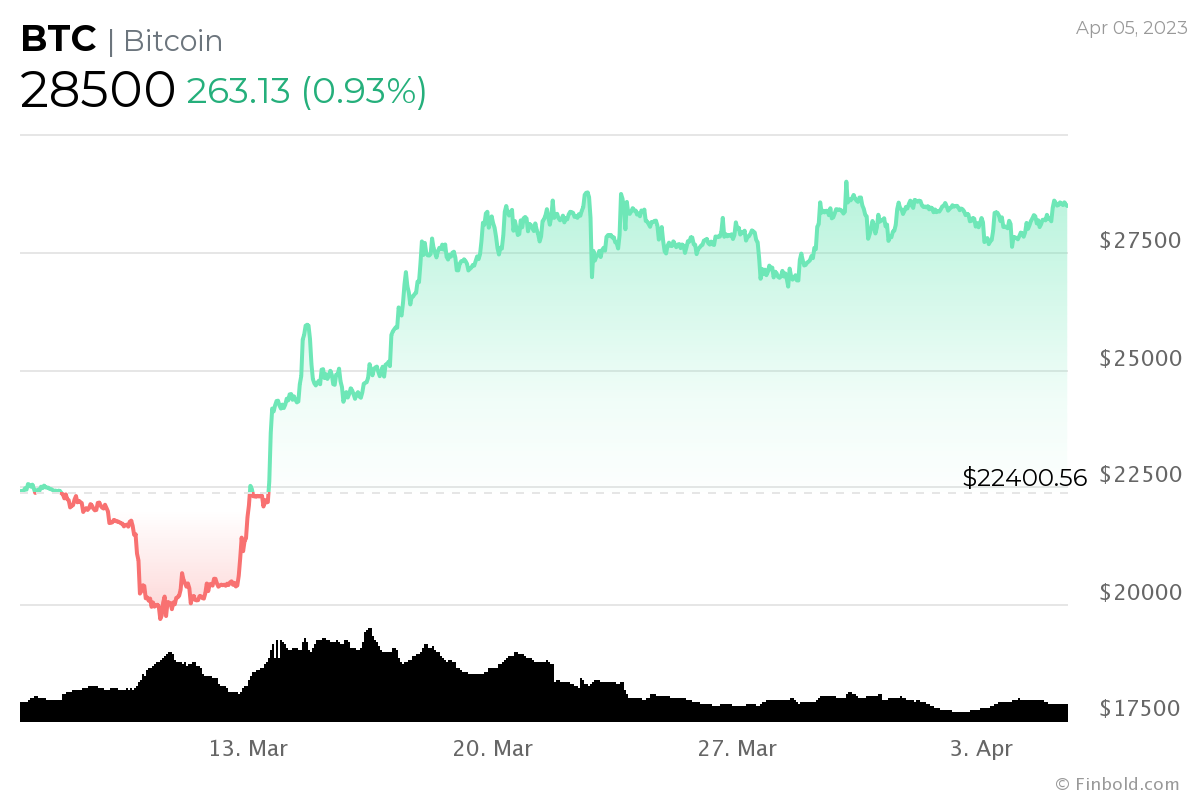 Meanwhile, the maiden cryptocurrency was at press time changing hands at the price of $28,500, which represents a 0.93% gain in the last 24 hours, adding up to the positive price change of 4.43% over the previous seven days and 27.11% across the past month, as charts indicate.