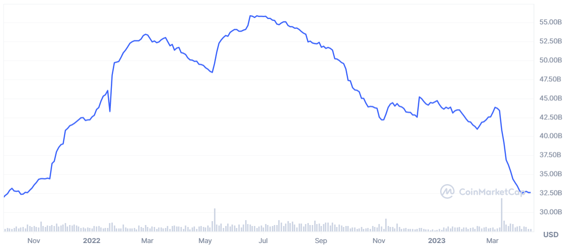 Moreover, the worrisome drop in USDC’s valuation gained steam at the beginning of March, with a steep decline from a high of $43.82 billion on March 4. Circle’s entanglement with Silicon Valley Bank aggravated the stablecoin’s woes, leading to a depeg on March 11. This compounded investors’ concerns, resulting in further outflows.